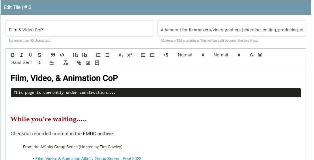 If you are unable to edit the tile or the Landing Tile tile is greyed out, submit a ticket by writing to support@emdcon.org.